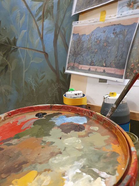 Hier können Sie mir beim Arbeiten über die Schulter schauen. Das Motiv ist hier der Garten der Livia aus der Villa di Livia.